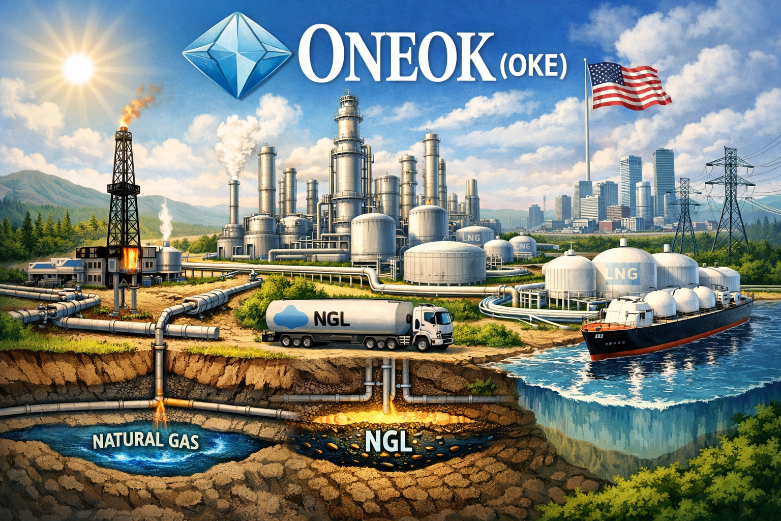 ONEOK(이하 OKE)는 북미 미드스트림(Midstream) 에너지 산업을 선도하는 S&P 500 기업으로, 털사에 본사를 두고 100년 이상의 역사를 이어오고 있음. 동사는 천연가스, 천연가스 액체(NGL), 정제유 및 원유를 연결하는 약 60,000마일 규모의 방대한 파이프라인 네트워크를 운영하며, 에너지 생산지와 주요 시장 허브를 잇는 중추적인 역할을 수행함. 특히 2023년 마젤란 미드스트림 파트너스(Magellan Midstream Partners) 인수를 기점으로 단순 가스 인프라 기업에서 정제유와 원유 물류까지 아우르는 종합 에너지 물류 기업으로 비즈니스 모델을 확장했음.