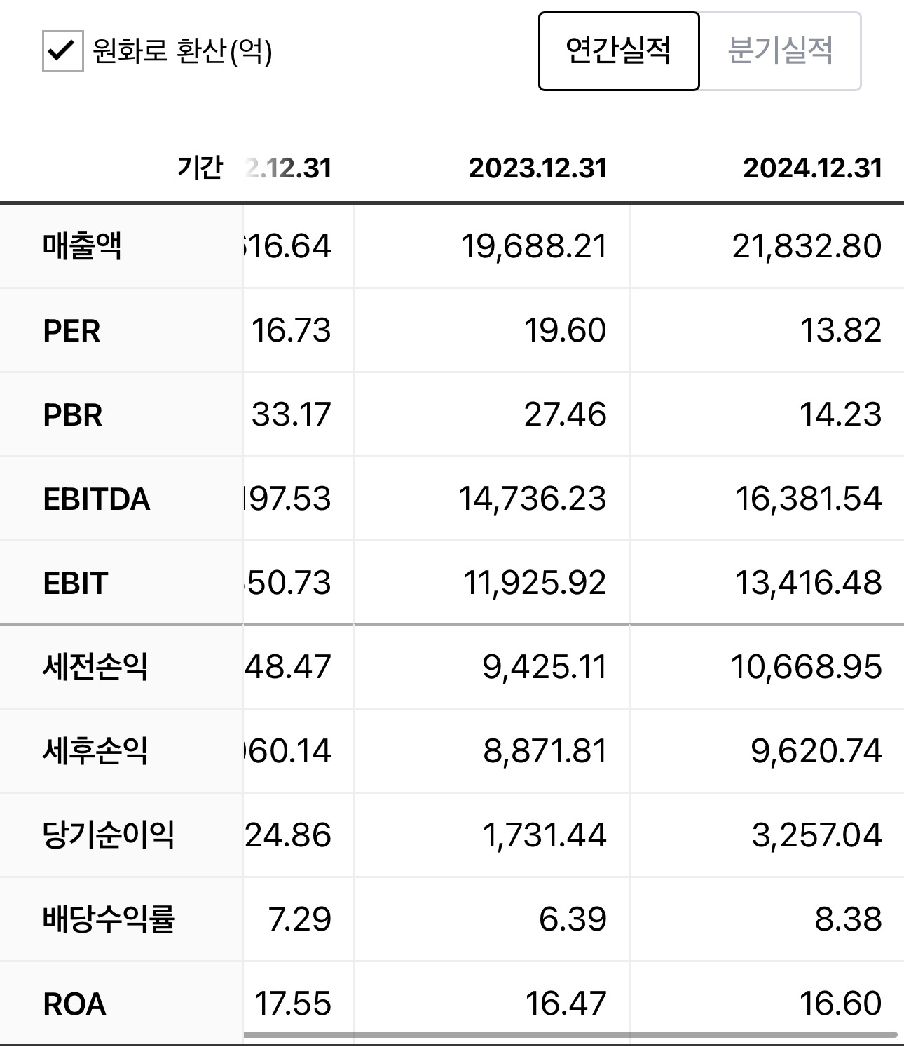 | 2023년 | $2.42 | $2.85 | 1.18x |