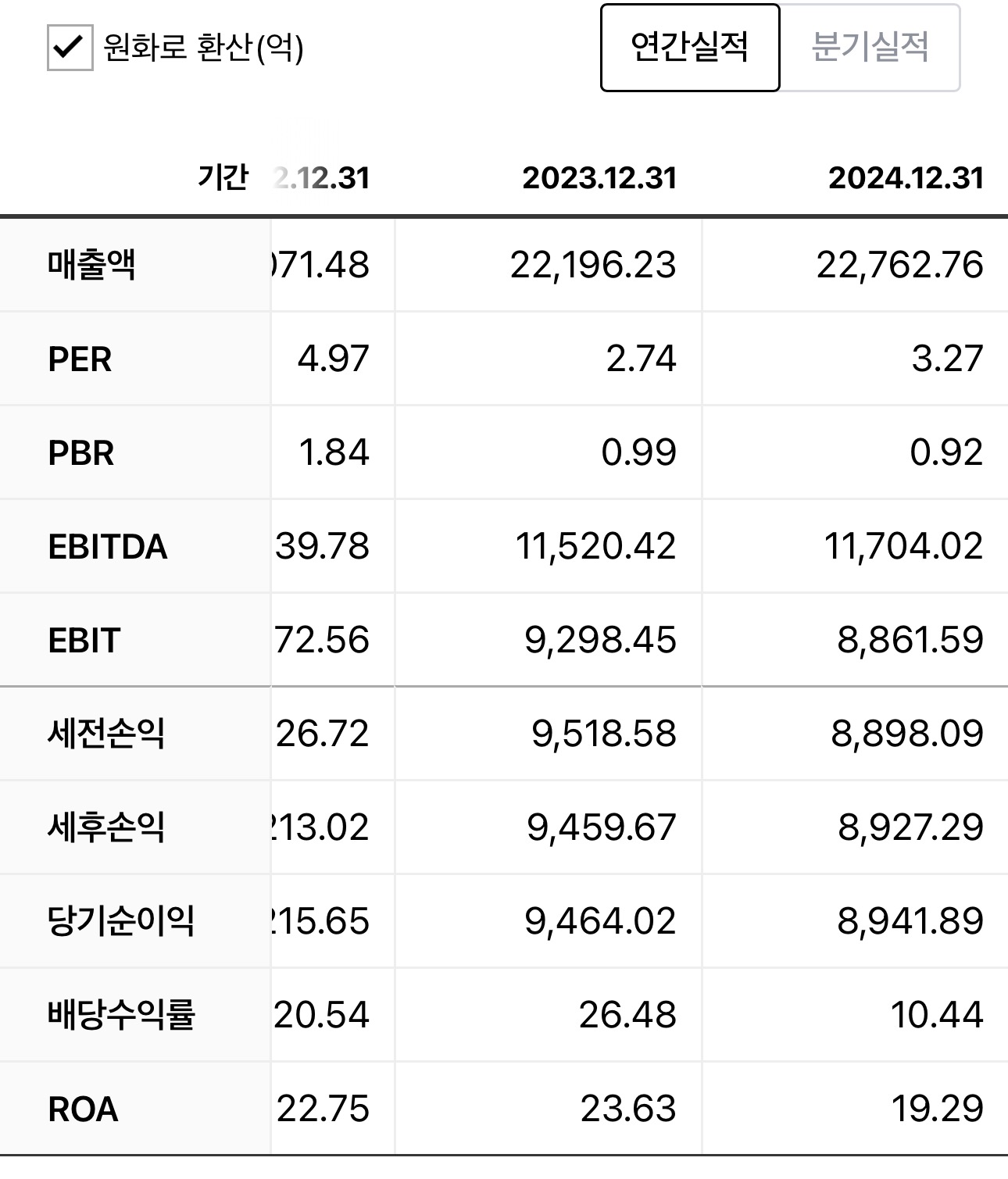 - 재무 건전성: ★★★★★ (역대급 이익으로 부채를 이미 많이 털어냄)