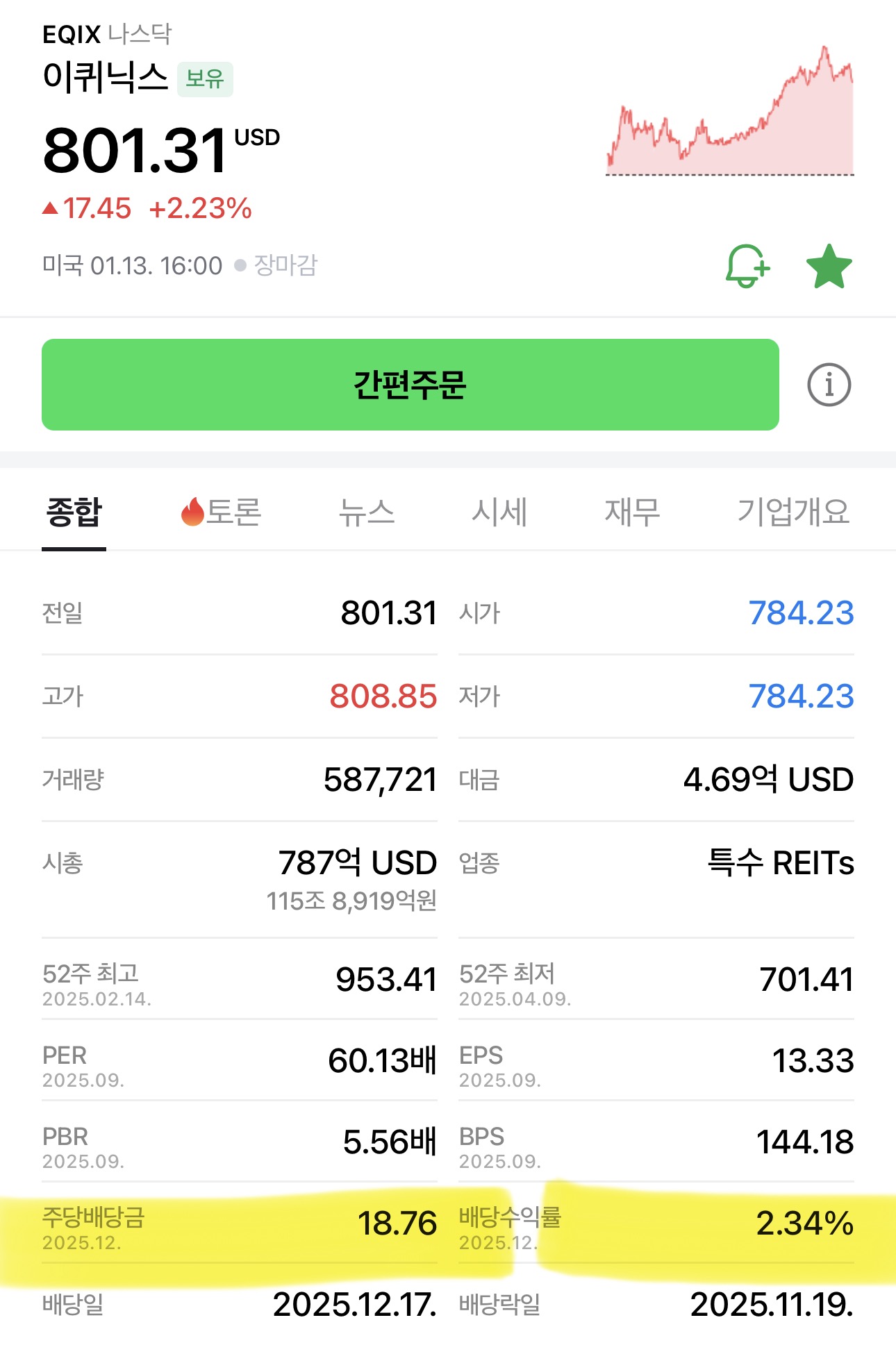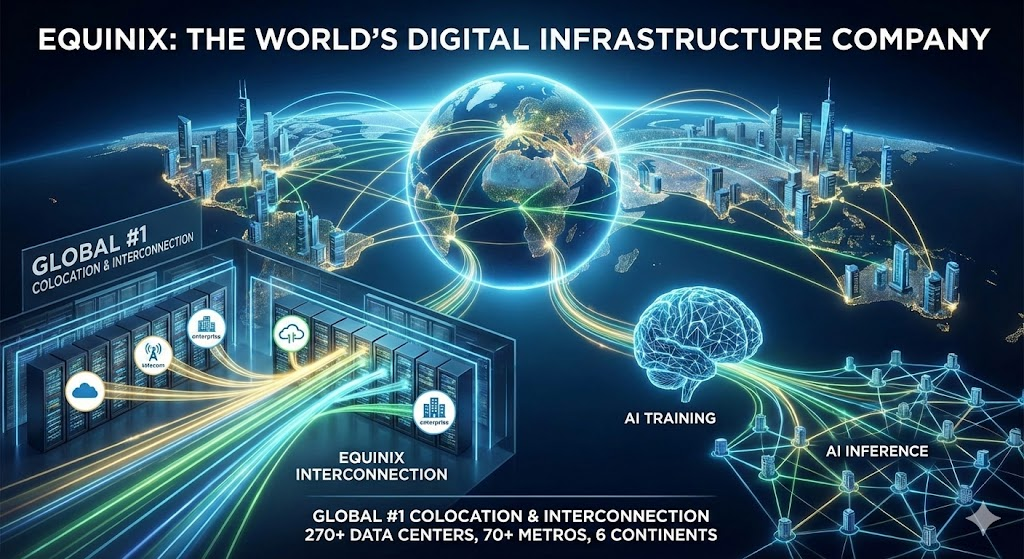 EQIX는 단순히 '부동산'을 빌려주는 회사가 아니라, '전 세계 데이터의 교차로'임. 2026년 현재 주가는 $800를 넘어서며 역대급 밸류에이션을 받고 있지만, AI 추론 시장이 개화하면서 상호연결 매출이 폭발하고 있다는 점을 주목해야 함.