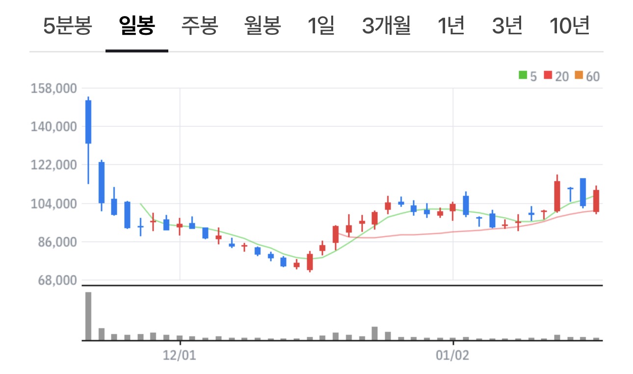 - 지지선 확인: 현재 95,000원~100,000원 선이 튼튼한 지지선으로 보임. 여기 안 깨지면 우상향 기대 가능함.