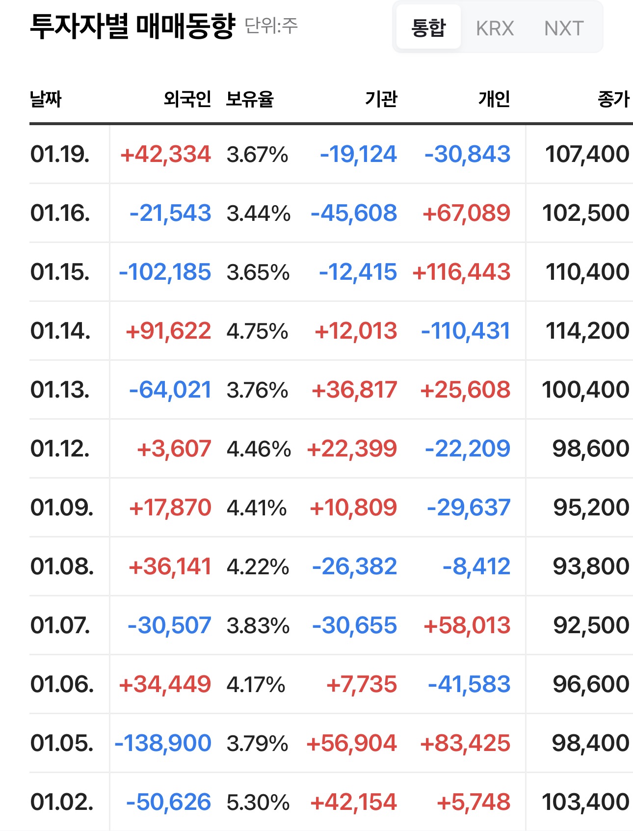 - 오버행이슈 : 2개월 물량 해제되는 내일(1/20) 수급 확인이 제일 중요함. 기관이 던지는지, 아니면 개미가 받아내는지 지켜봐야 함.