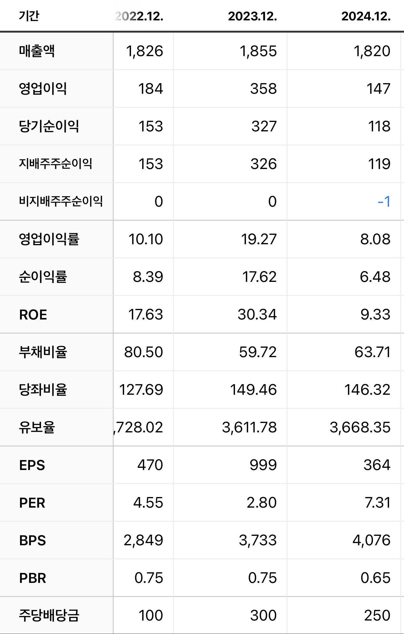 - 2024년 배당금: 주당 250원 (결산 배당)