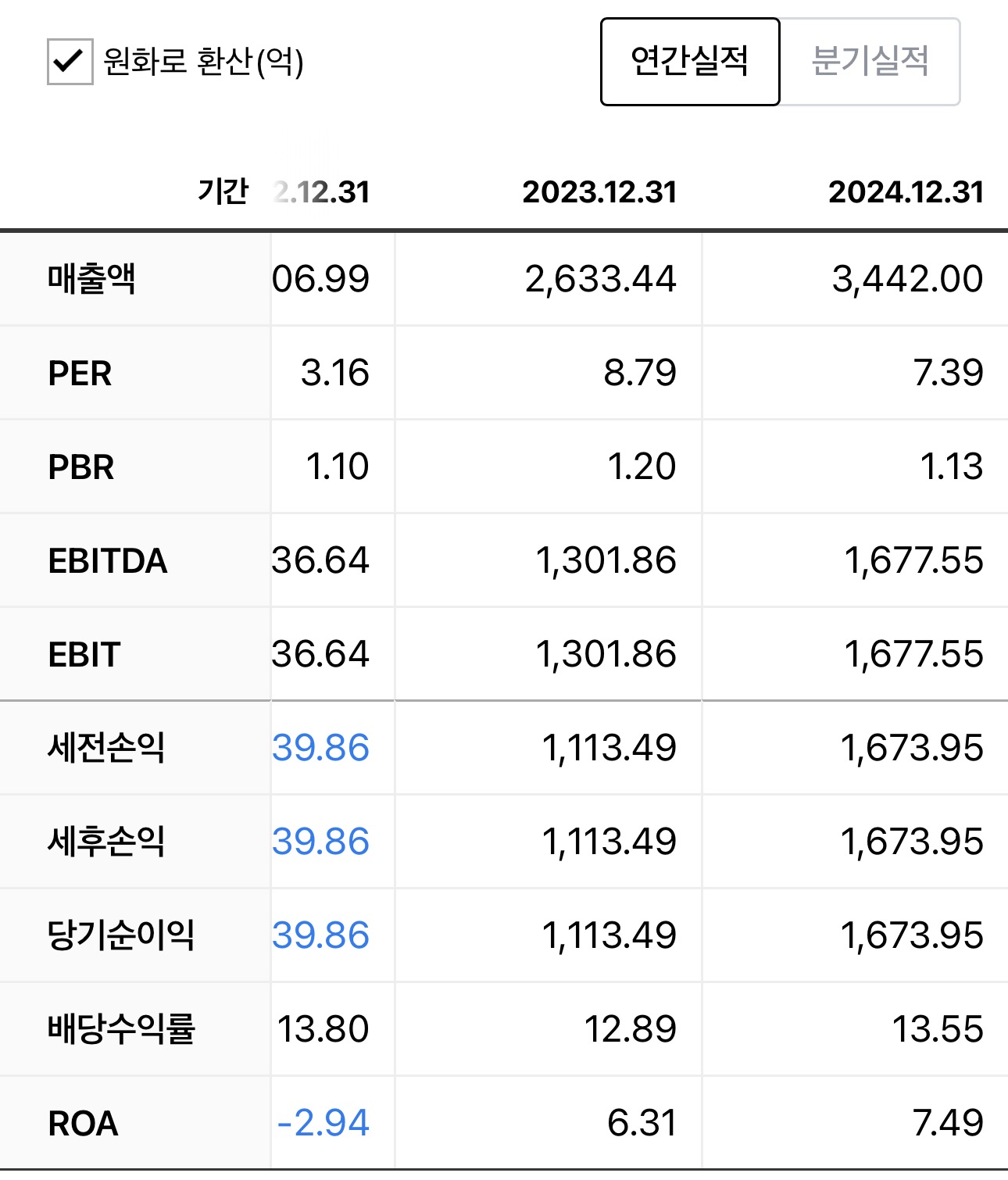 | 2022년 | $1.78 | 금리 인상 수혜로 대출 수익 급증 | $13.15 |