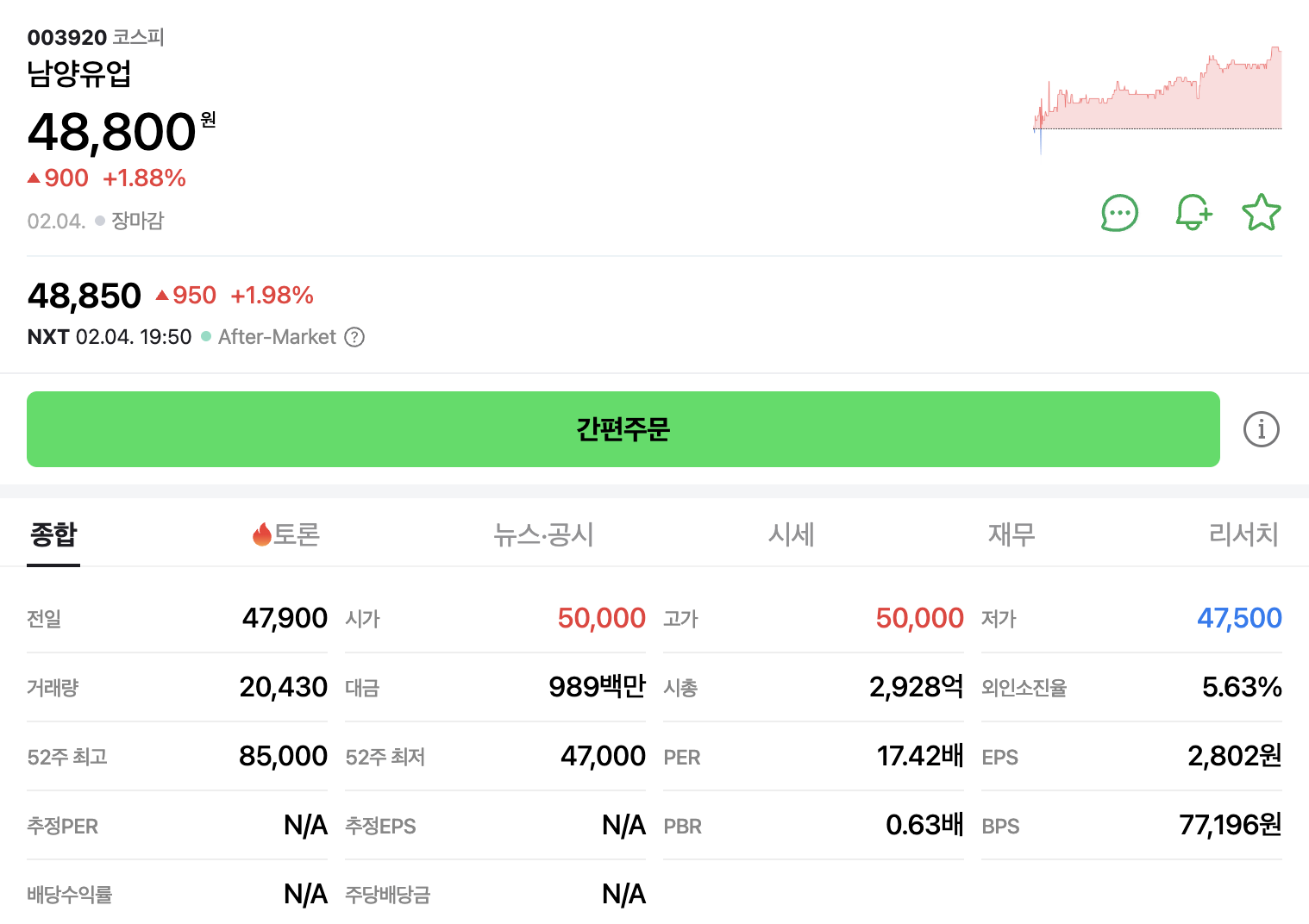 https://m.stock.naver.com/domestic/stock/003920/